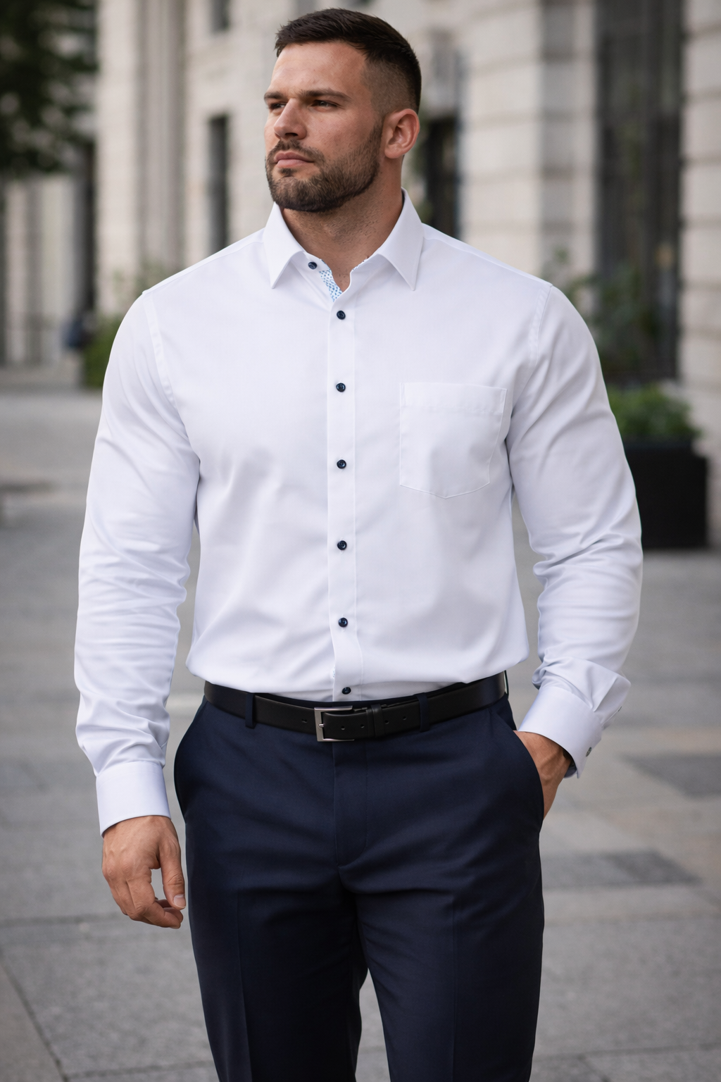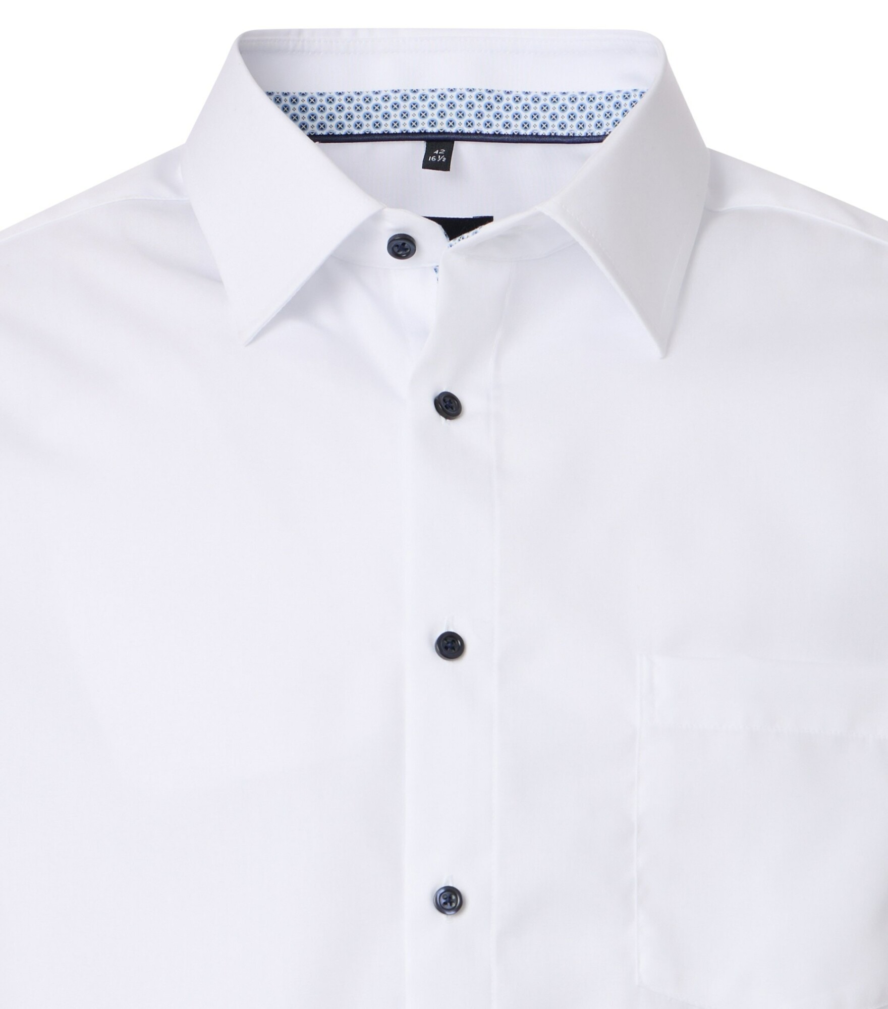 Cette chemise à manches longues, grande taille venti est la version modernisée de la référence 3651. C’est la même chemise mais avec l’intérieur du col et des poignets doublés dans un tissu fantaisie dans la tendance actuelle. Elle retrouve toutes les caractéristiques de qualité de coupe, de tissu et de facilité d’entretien de sa grande sœur. Sur les coloris clairs les boutons sont en opposition de couleur.