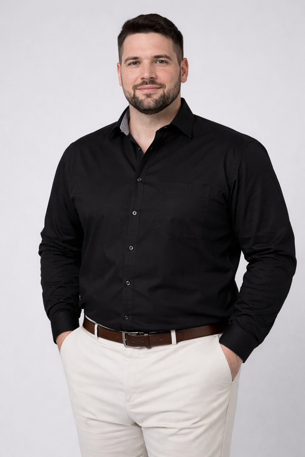 Cette chemise à manches longues, grande taille Venti est la version modernisée de la référence 3651. C’est la même chemise mais avec l’intérieur du col et des poignets doublés dans un tissu fantaisie dans la tendance actuelle. Elle retrouve toutes les caractéristiques de qualité de coupe, de tissu et de facilité d’entretien de sa grande sœur.