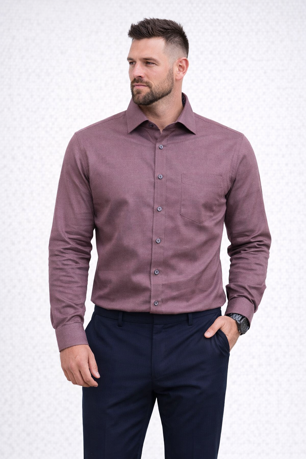 Une chemise au grain discret dans un coloris de saison.