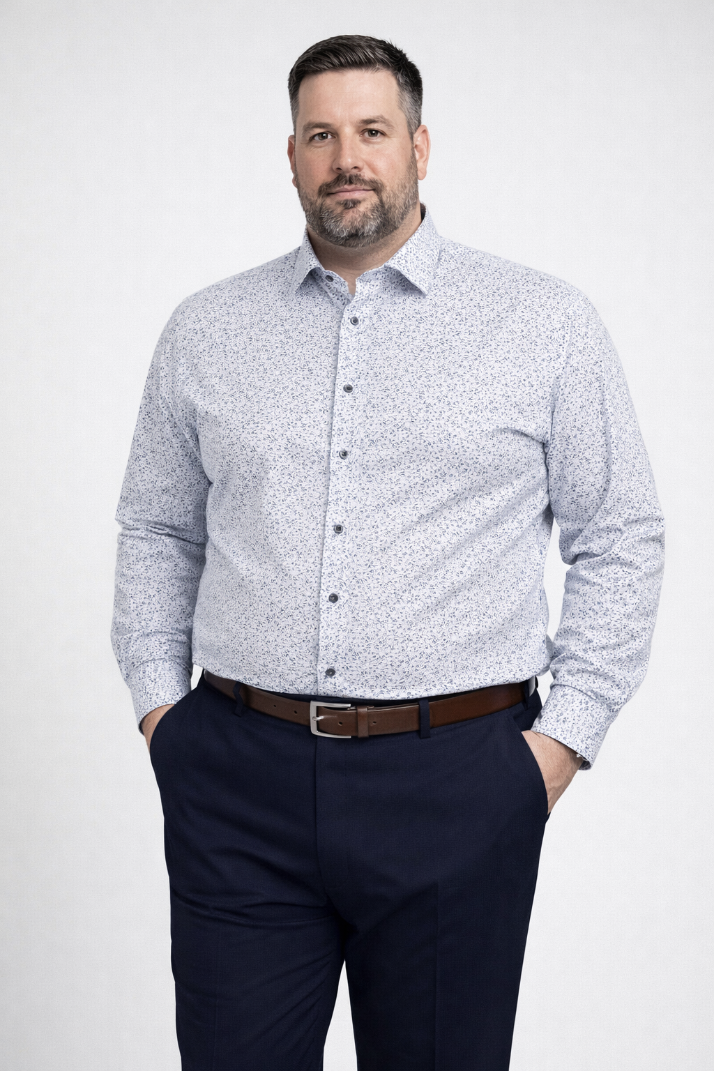 Cette chemise Marvelis à manches longues séduit par son imprimé fin et élégant qui apporte une touche de modernité tout en restant facile à porter au quotidien. Confectionnée en 100% coton, elle bénéficie d’un traitement sans repassage pour un entretien simplifié et une tenue toujours impeccable. Sa coupe confortable est spécialement adaptée aux silhouettes fortes, offrant aisance et élégance avec un pantalon ville ou un chino.