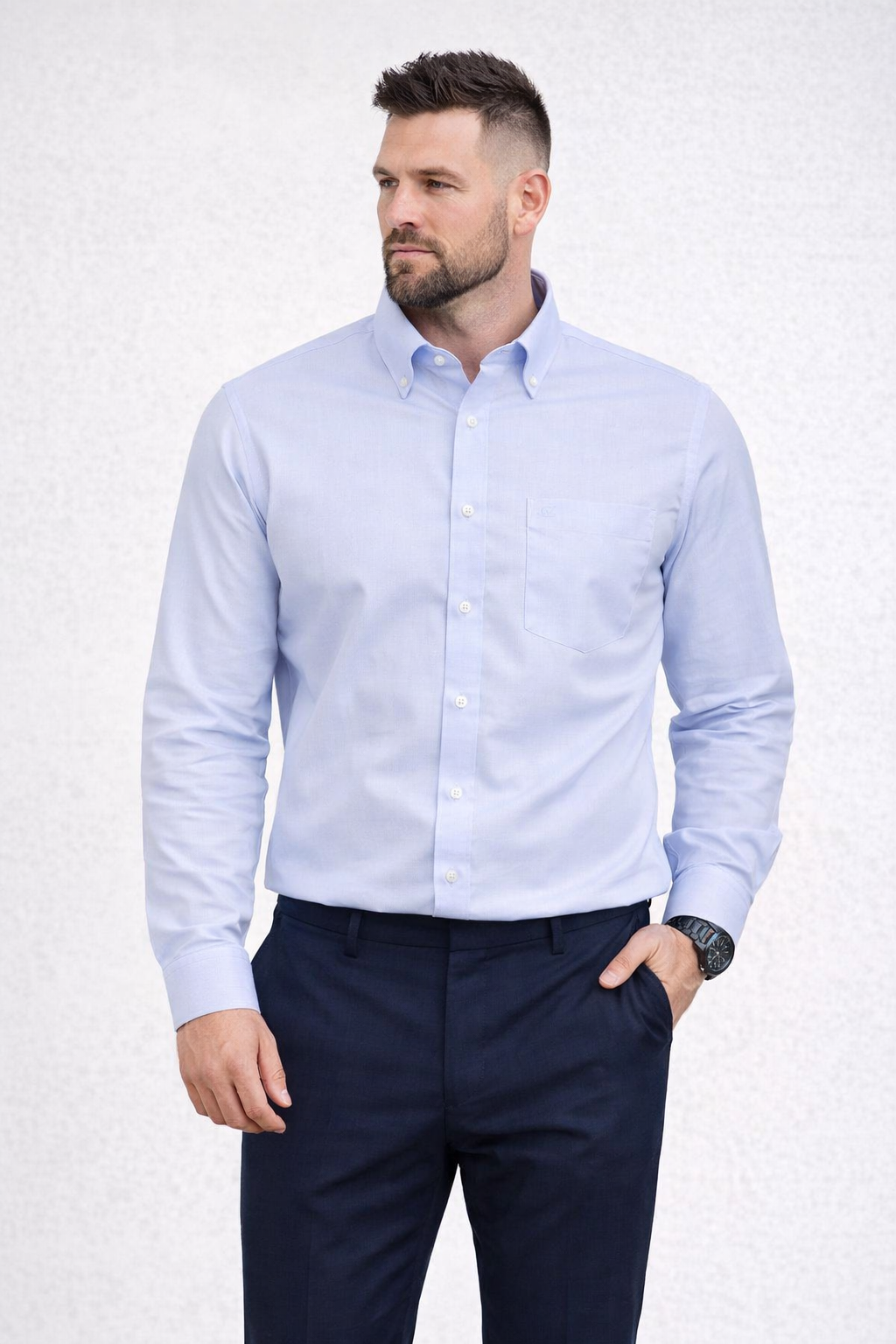 Cette chemise oxford grande taille Venti est une article qui revient en force. Dans sa version adaptée à l’homme fort la coupe est confortable et la longueur bien suffisante pour éviter qu’elle ne sorte intempestivement de votre pantalon. Elle est disponible dans de nombreux coloris jusqu’à la taille 54. Le tissu oxford est traité en repassage facile pour le plus grand bonheur de la « repasseuse ».