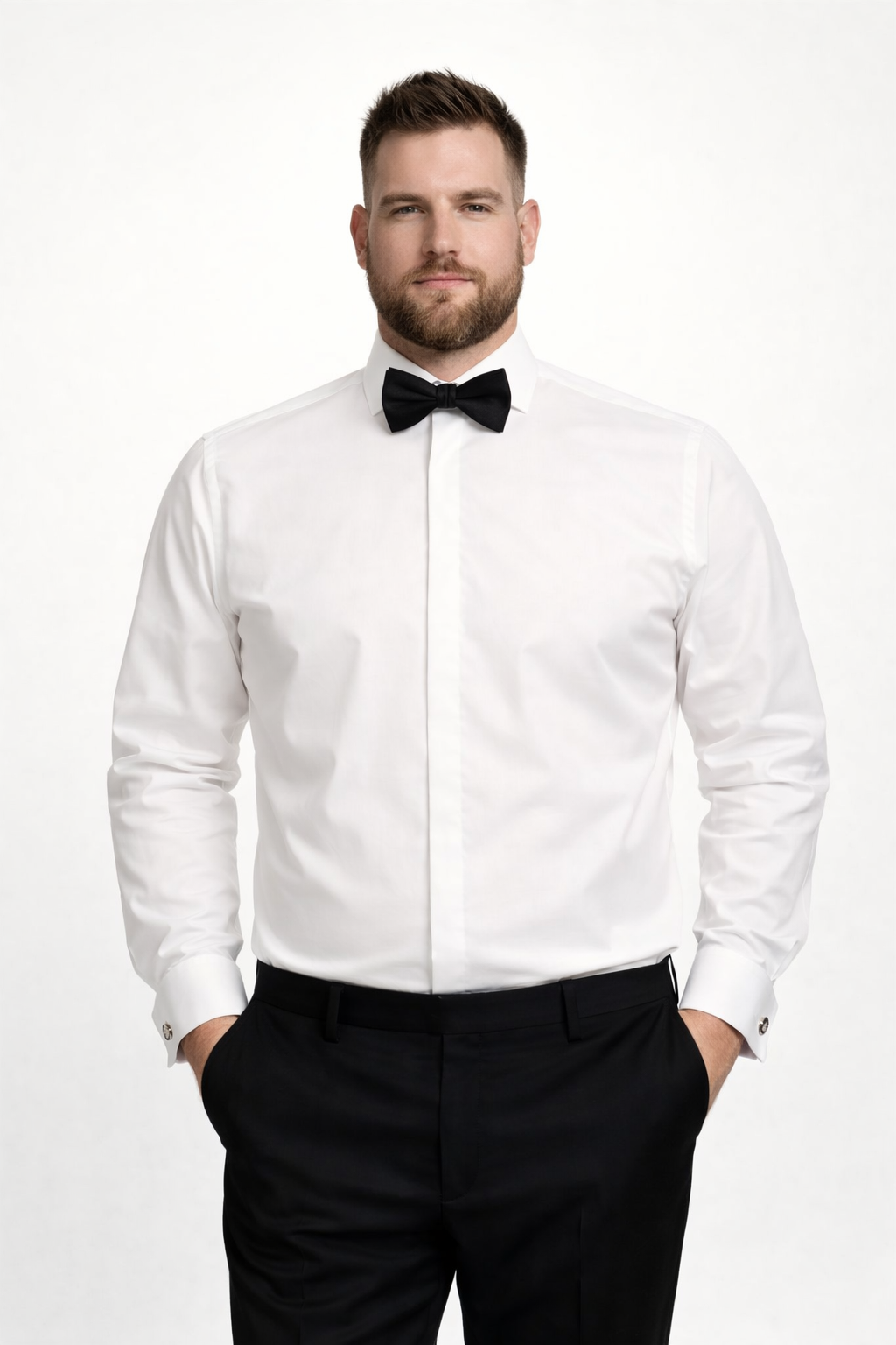 Vous êtes plutôt fort et pour votre cérémonie vous recherchez une chemise cintrée. Cette chemise Venti, grande taille est tout à fait ce qu’il vous faut. Avec ses manches de 65cm, sa gorge cachée, ses poignets mousquetaires, son tissu 100% coton et les couleurs blanc ou ivoire pour assortir à la couleur de la robe de la mariée vous êtes paré.