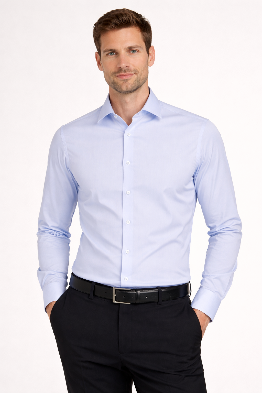 Chemise ciel pour homme grand en 100 % coton. Manches longues 72 cm adaptées aux grandes tailles. Coupe confortable, tissu facile d’entretien sans repassage. Idéale pour le bureau, les cérémonies ou le quotidien.