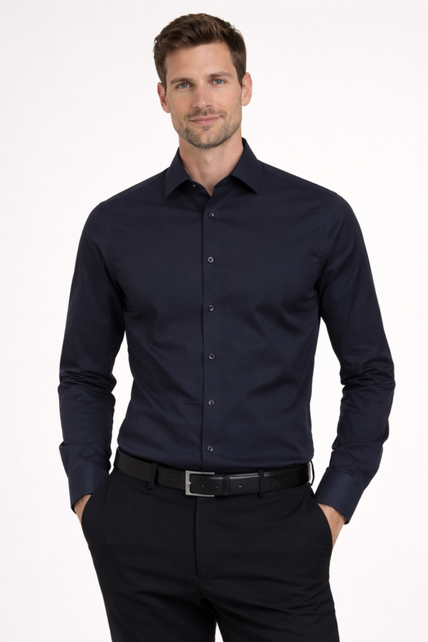 Chemise marine pour homme grand en 100 % coton. Manches longues 72 cm adaptées aux grandes tailles. Coupe confortable, tissu facile d’entretien sans repassage. Idéale pour le bureau, les cérémonies ou le quotidien.