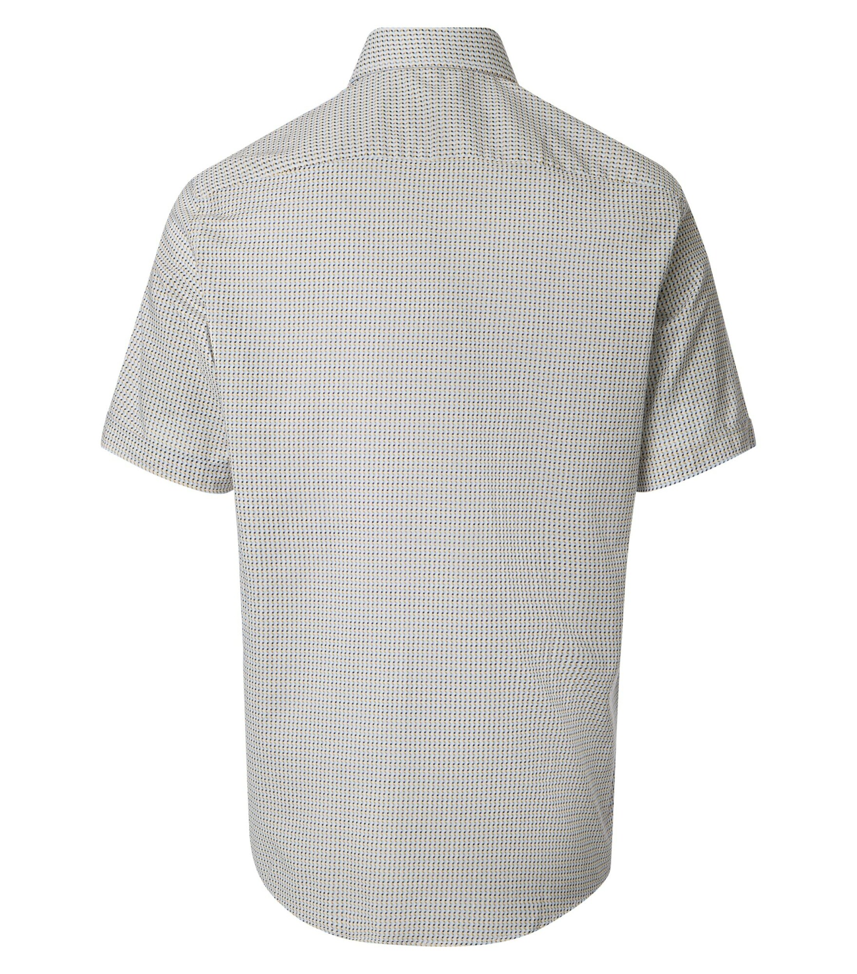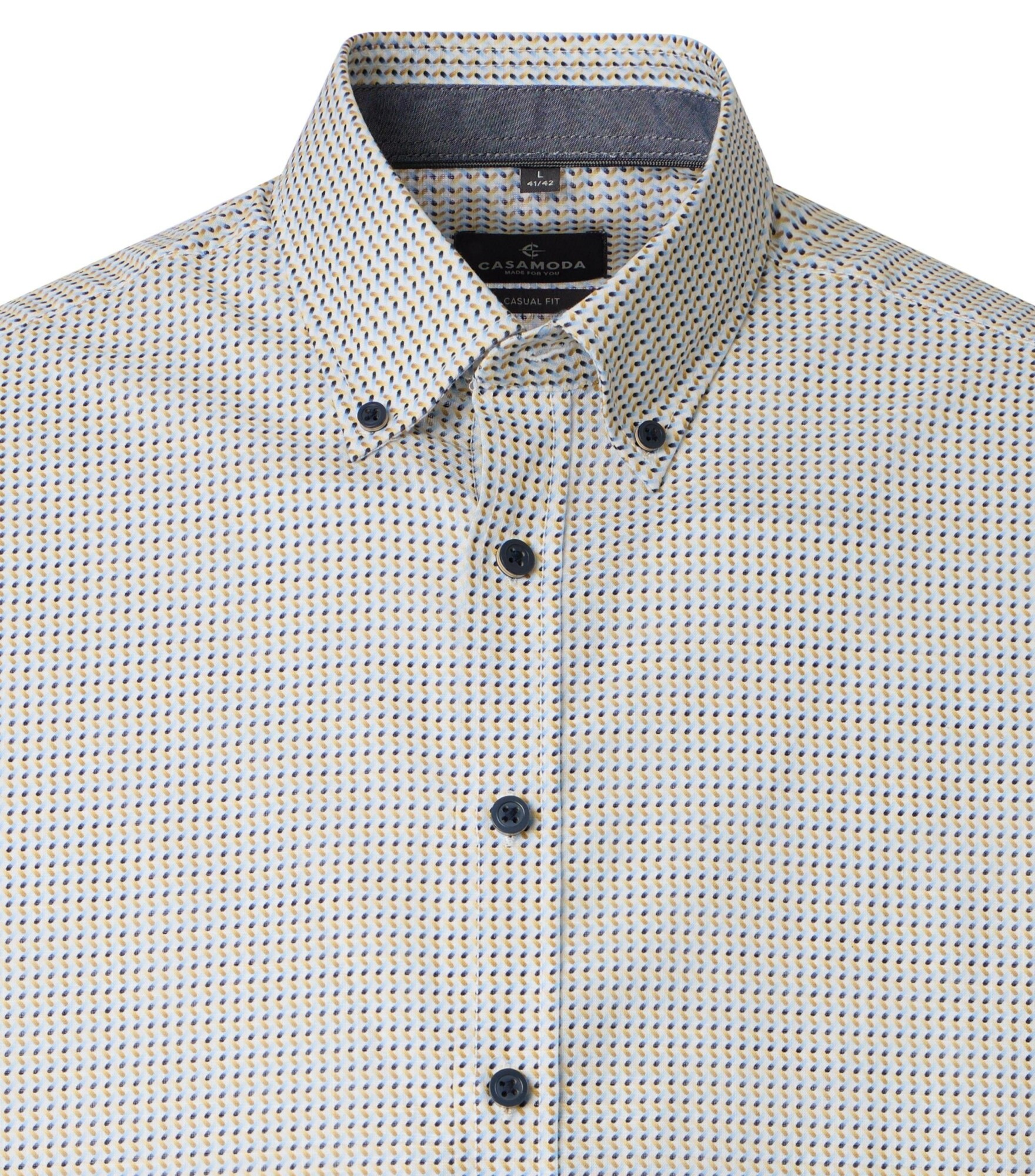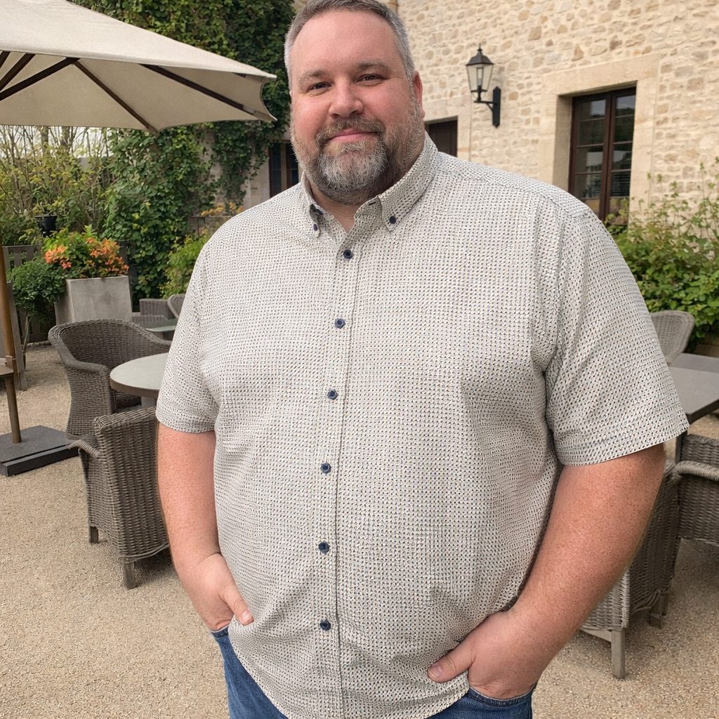 Optez pour une élégance discrète avec cette chemisette Casamoda grande taille à manches courtes. Son micro-motif graphique subtil sur fond beige apporte du relief tout en restant facile à associer. Conçue pour offrir confort et aisance aux hommes forts, elle assure une coupe adaptée et un tombé impeccable. Idéale pour un look estival soigné, du bureau aux sorties décontractées.