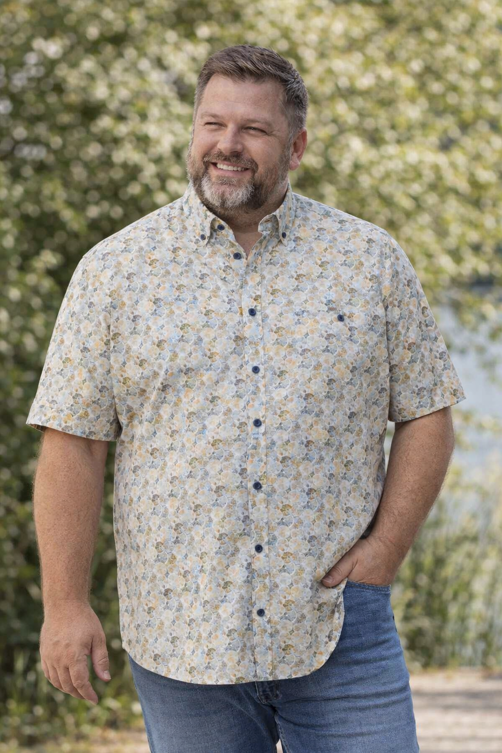 Apportez de la fraîcheur à votre dressing avec cette chemisette Casamoda grande taille à manches courtes. Son imprimé floral multicolore aux tons doux bleu, beige et ocre offre un style estival élégant et original. Confectionnée dans une matière confortable et respirante, elle assure une coupe adaptée aux morphologies généreuses et un tombé impeccable. Idéale pour un look casual chic, elle se porte aussi bien avec un jean qu’un chino.