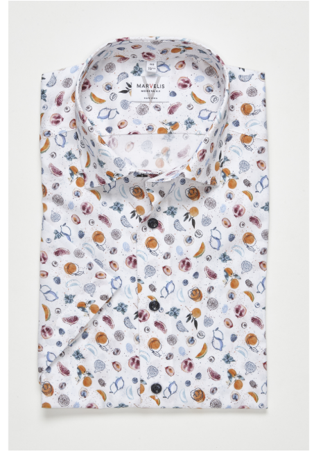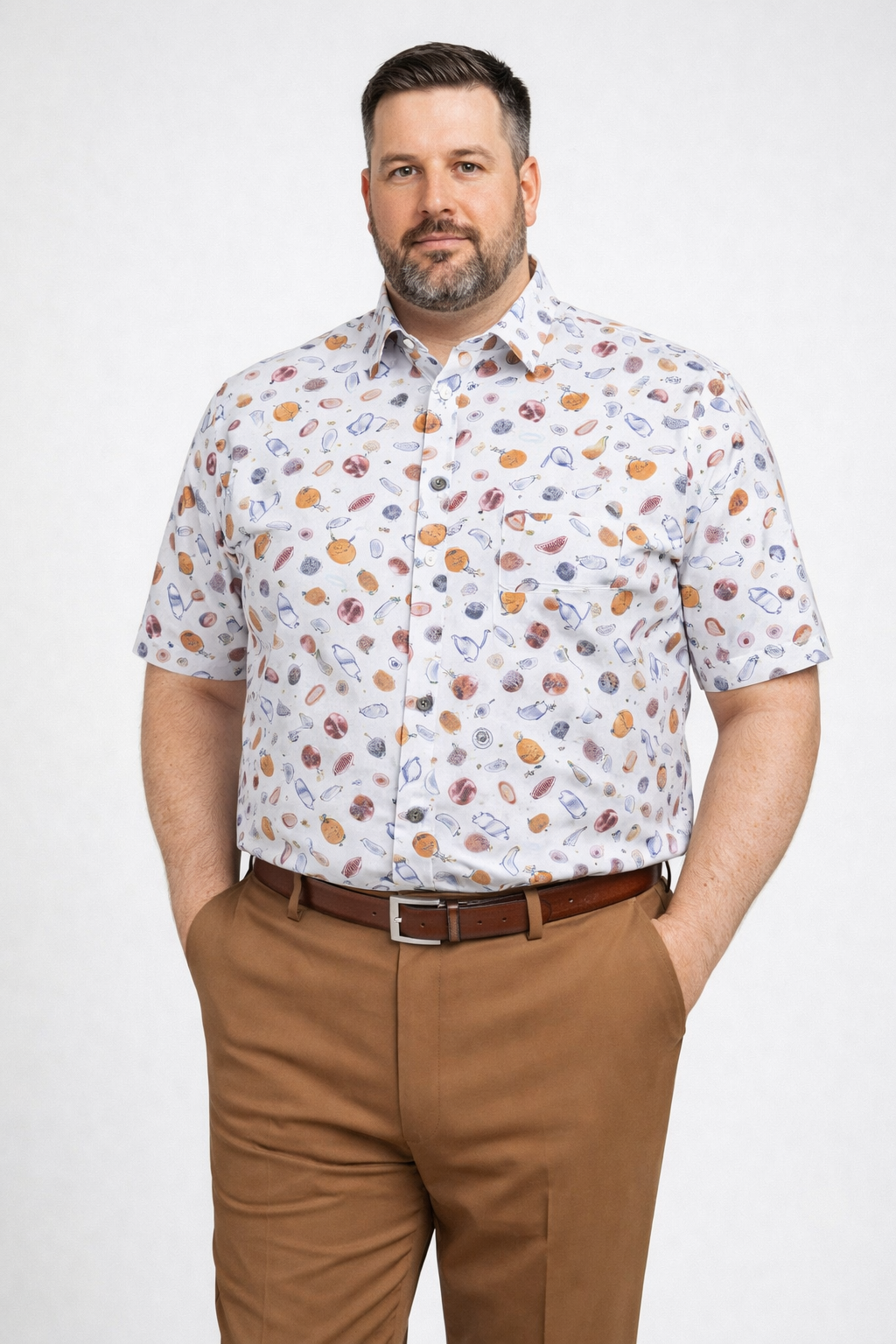 Cette chemisette Marvelis grande taille séduit par son élégant imprimé aux tons doux qui apporte une touche moderne et estivale à votre tenue. Confectionnée en 100% coton, elle bénéficie d’un traitement sans repassage pour un entretien facile et un rendu toujours impeccable. Sa coupe confortable est spécialement adaptée aux silhouettes fortes et s’associe parfaitement avec un pantalon de toile ou un pantalon ville pour un style chic et décontracté.