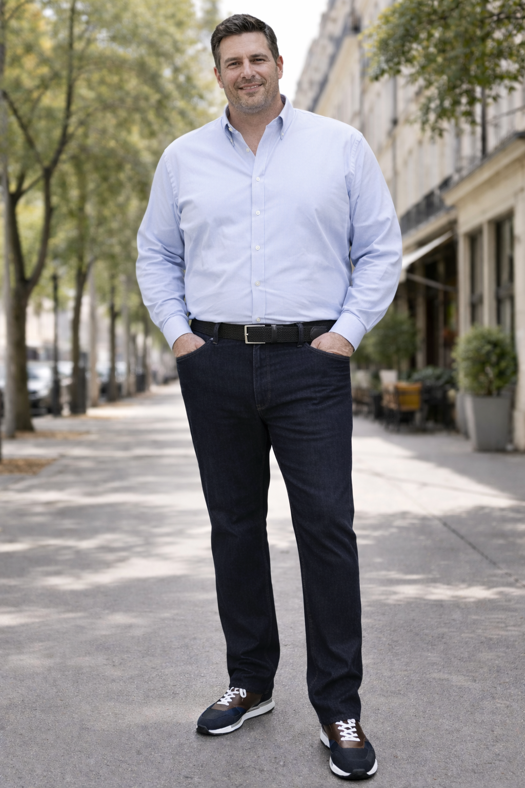 Ce jean grande taille de la marque allemande Club of Comfort arrivé depuis quelques saisons dans la collection Stilbo a fait l’unanimité. Avec ses poches passepoilées derrière il peut être considéré comme un jean « habillé » que l’on portera au travail. Celui qui a goûté à ce confort aura du mal à passer à autre chose, d’autant que ce jean a aussi une excellente tenue. La conformation trapue sera idéale pour les hommes forts.