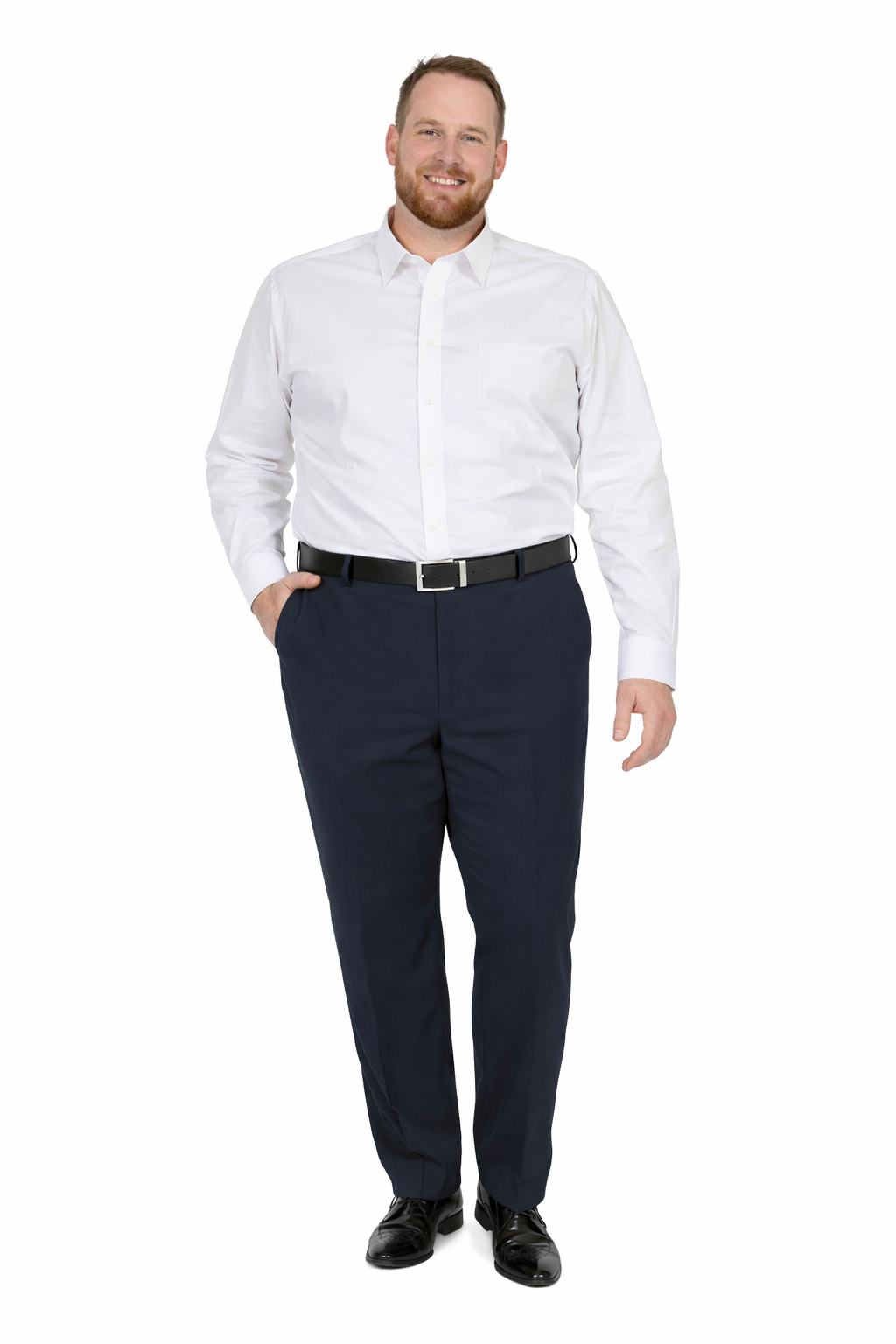 Bien que ce type de pantalon n’ai plus le vent en poupe, il n’en demeure pas moins que l’homme fort qui a besoin de ce type de produit a là le pantalon idéal. Ce pantalon de ville grande taille, Club of Comfort de coupe konvex est parfaitement adapté à la morphologie de l’homme fort plus ou moins « ventru ». Il monte bien dans le dos pour bien couvrir le fessier et passe devant sous l’estomac, évitant ainsi les plis disgracieux habituels. Confectionné dans un tissu 330gr/m2 il couvrira toutes les saisons. Il est disponible en 5 coloris jusqu’à la taille 35 (66 français).