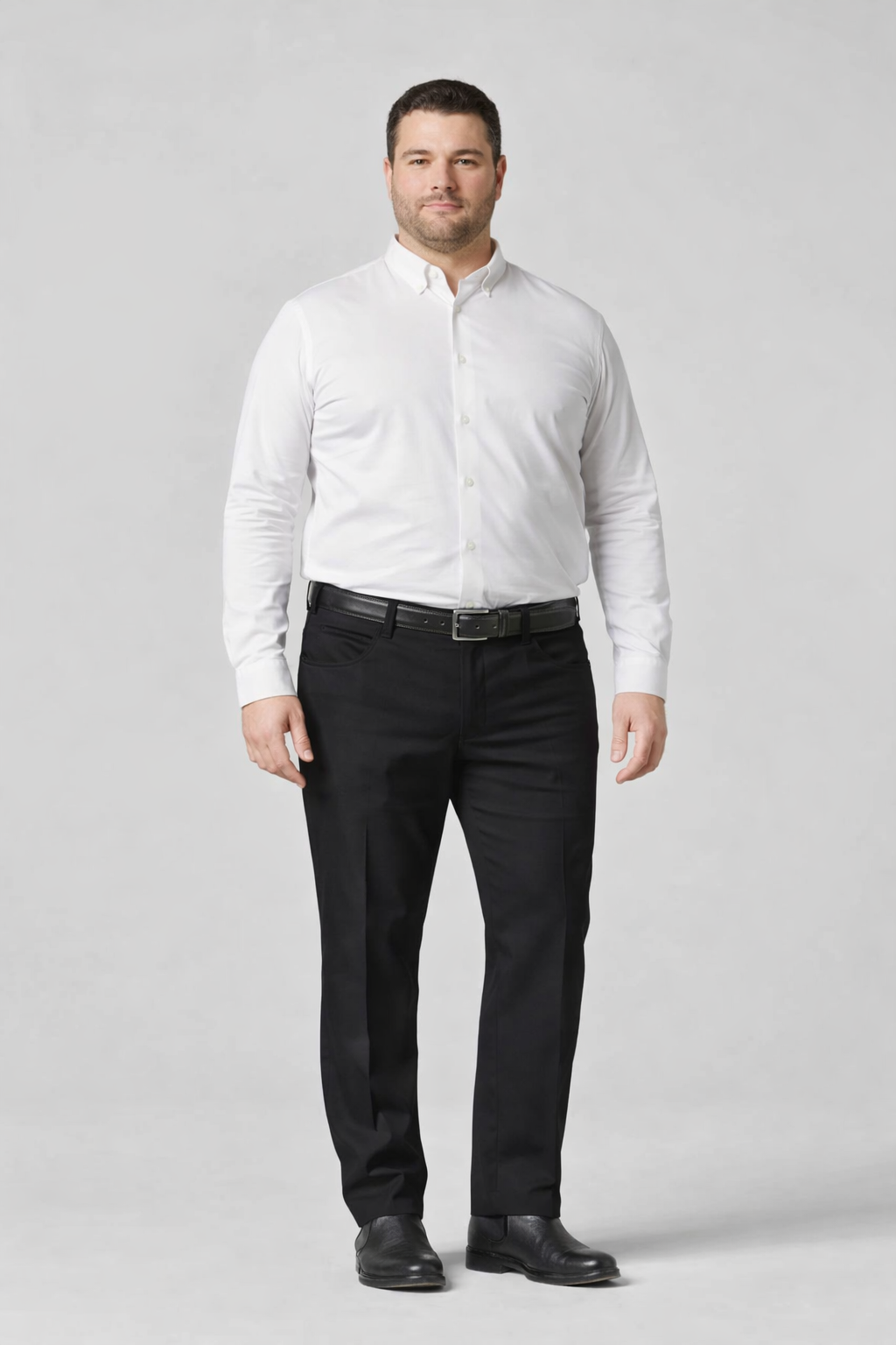 Ce pantalon de ville grande taille Meyer est un bon compromis pour l’homme fort qui ne veut pas de pantalon de ville classique. Ce modèle a la tenue et l’infroissabilité d’un pantalon de ville mais la coupe d’un jean. Il bénéficie bien sûr de toute la technologie des pantalons de la marque, avec tous les détails qui en font un pantalon raffiné.