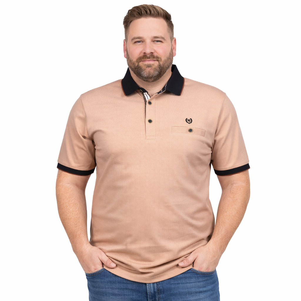 Polo grande taille homme Monte Carlo en maille piquée douce et confortable, composé de 95% coton et 5% élasthanne pour plus de souplesse au quotidien. Son col contrasté noir et ses finitions élégantes apportent une touche chic. Idéal pour un look casual ou habillé, avec un confort parfait en grande taille.