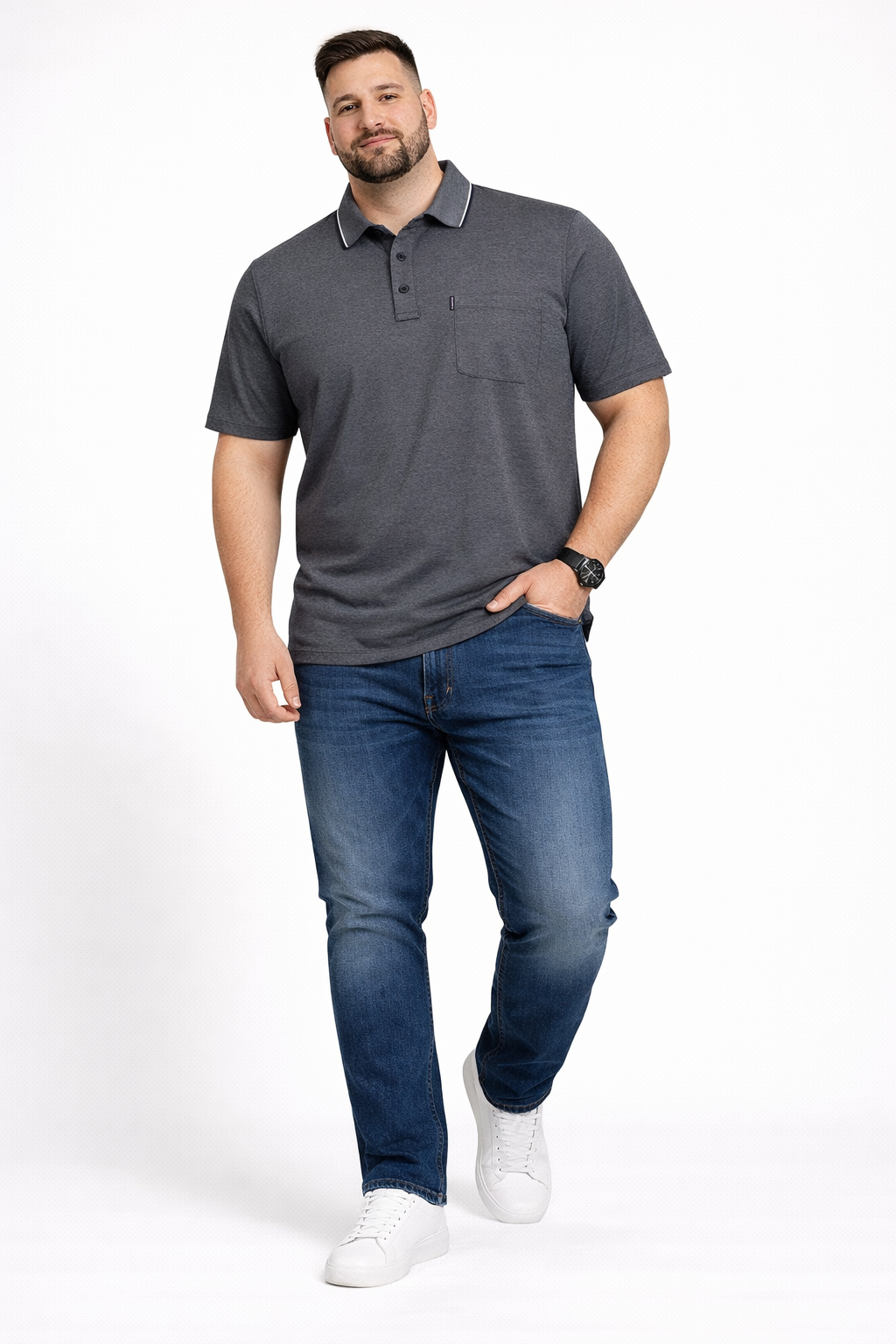 Ce polo à manches courtes, grande taille Casamoda, dispose de tous les arguments pour séduire l’homme fort. La coupe est confortable et la matière en maille piquée aérée et mélange de coton et polyester garantira un entretien facile, sans repassage. Il est pourvu d’une poche poitrine très pratique. Il est disponible jusqu’à la taille 6xl.