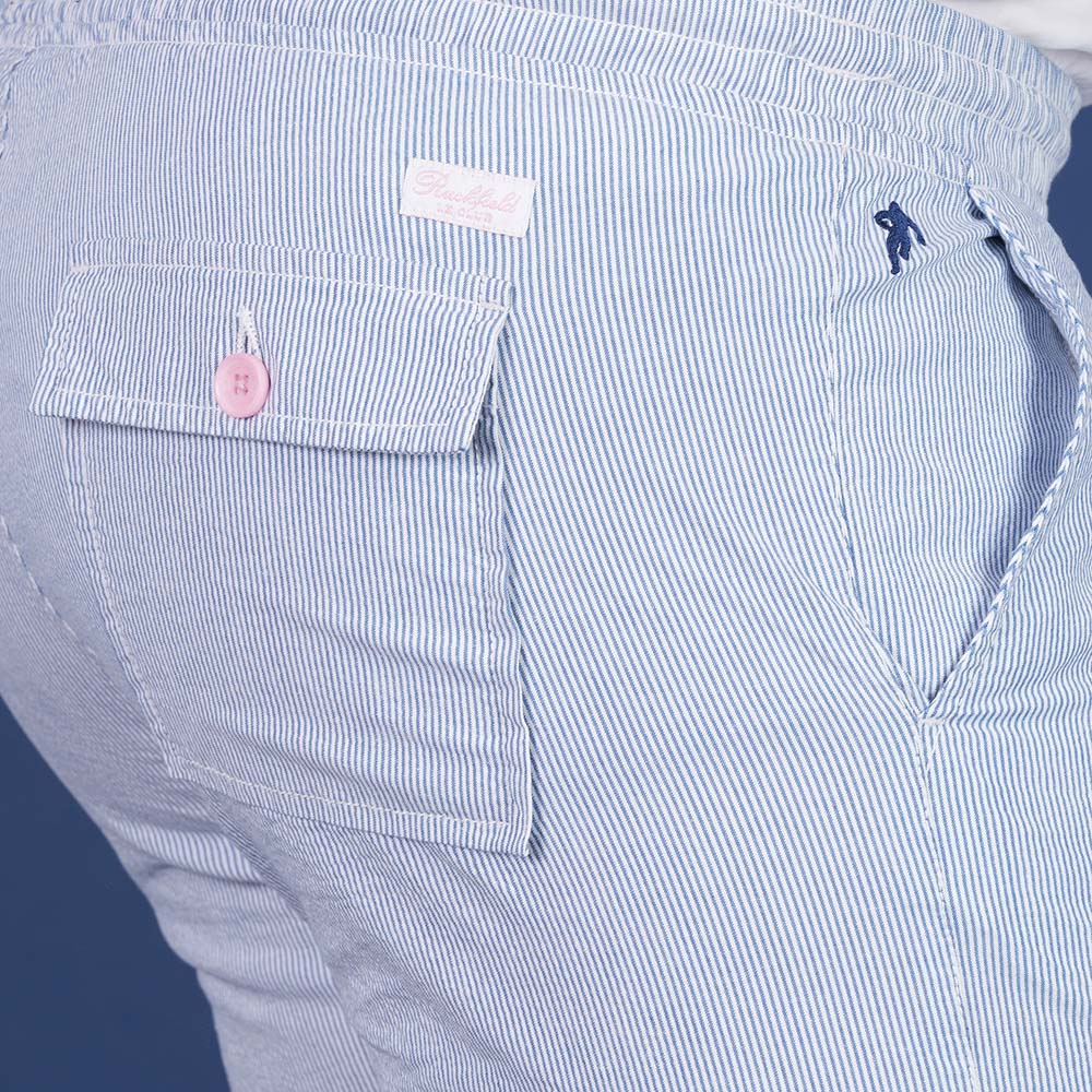 Adoptez un look estival élégant avec ce short Ruckfield signé Sébastien Chabal, spécialement conçu pour les hommes forts. Sa ceinture élastiquée avec cordon de serrage garantit un confort optimal et un ajustement parfait. Son tissu léger à fines rayures bleu et blanc apporte fraîcheur et modernité, tandis que ses finitions soignées et son logo brodé renforcent son style casual chic, idéal pour les beaux jours.