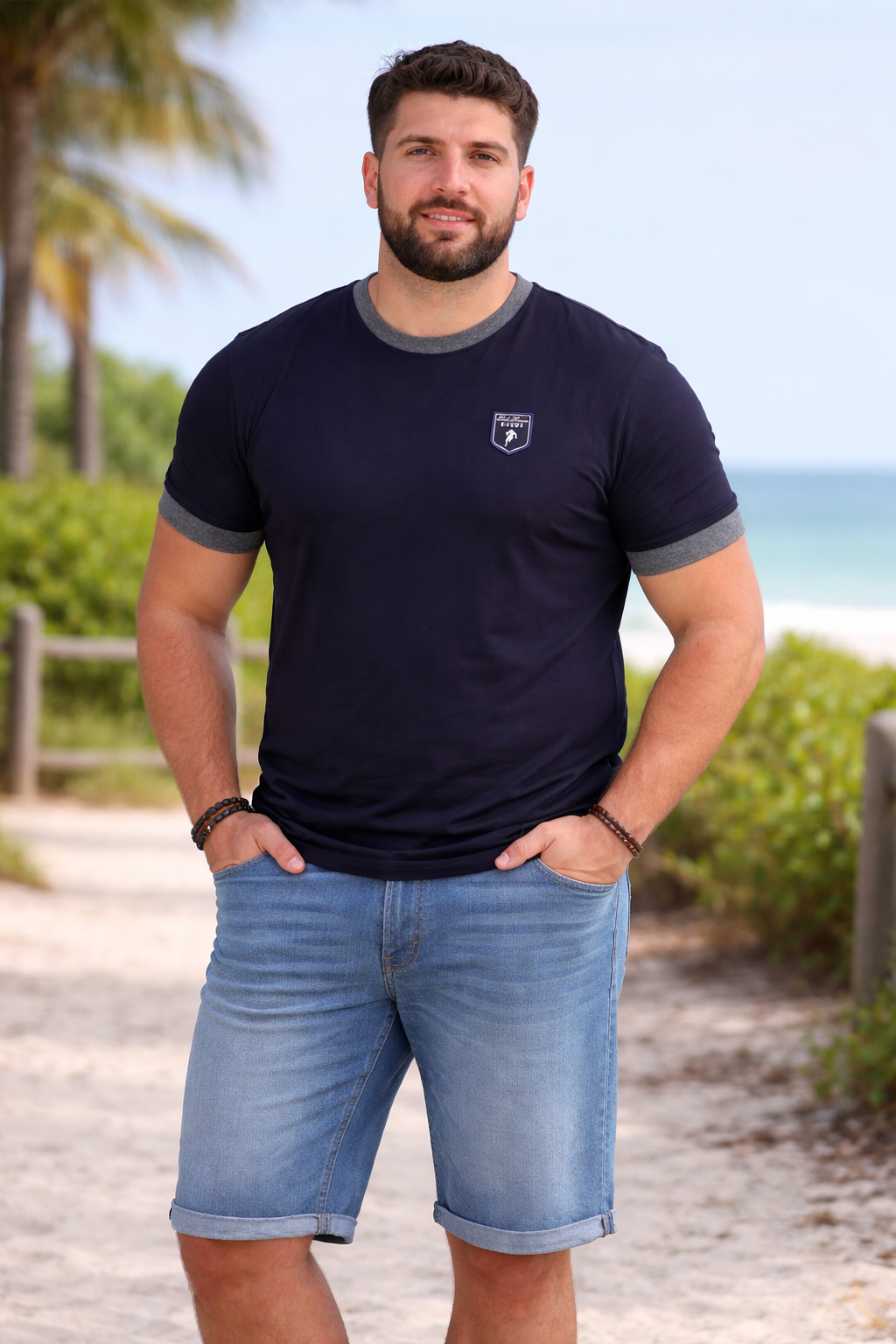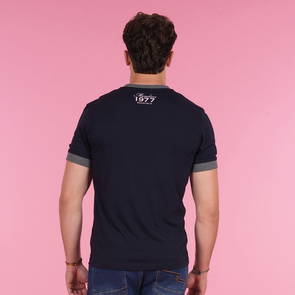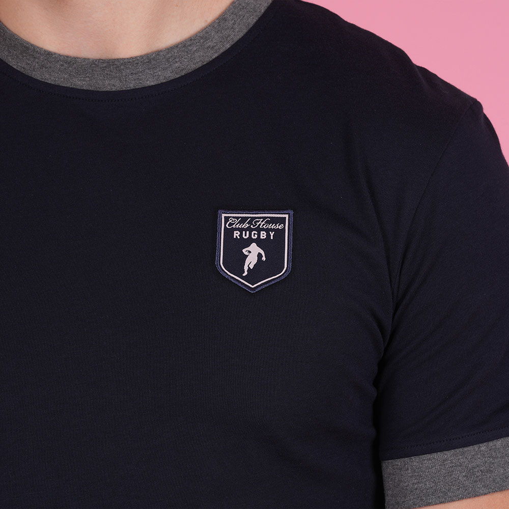 T-shirt Ruckfield Sébastien Chabal grande taille bleu marine col contrasté – Confort & style casual