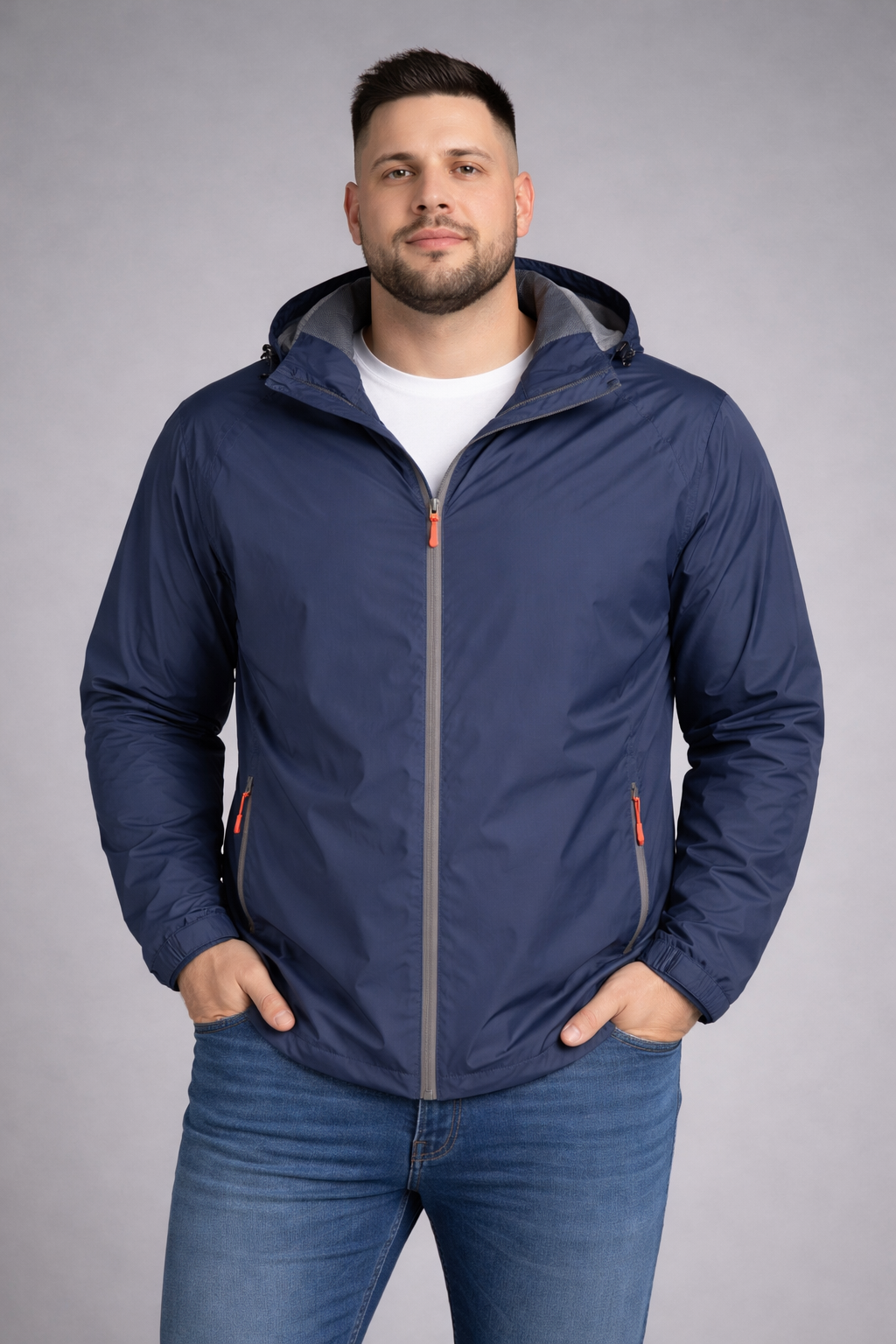 Veste de pluie à capuche grande taille Adamo marine.