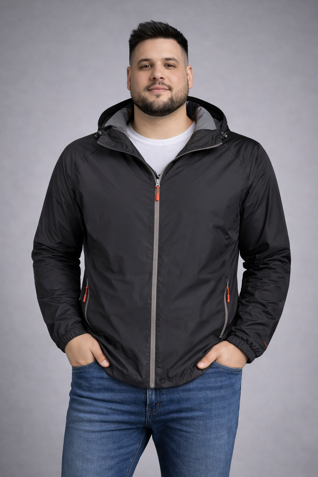 Veste de pluie à capuche grande taille Adamo noire.
